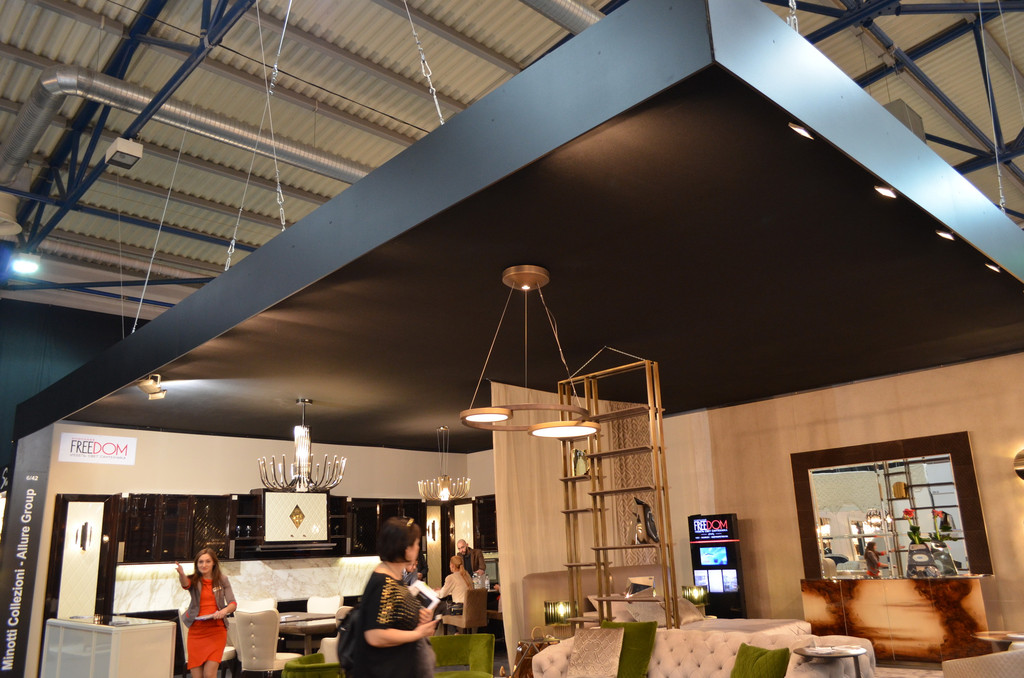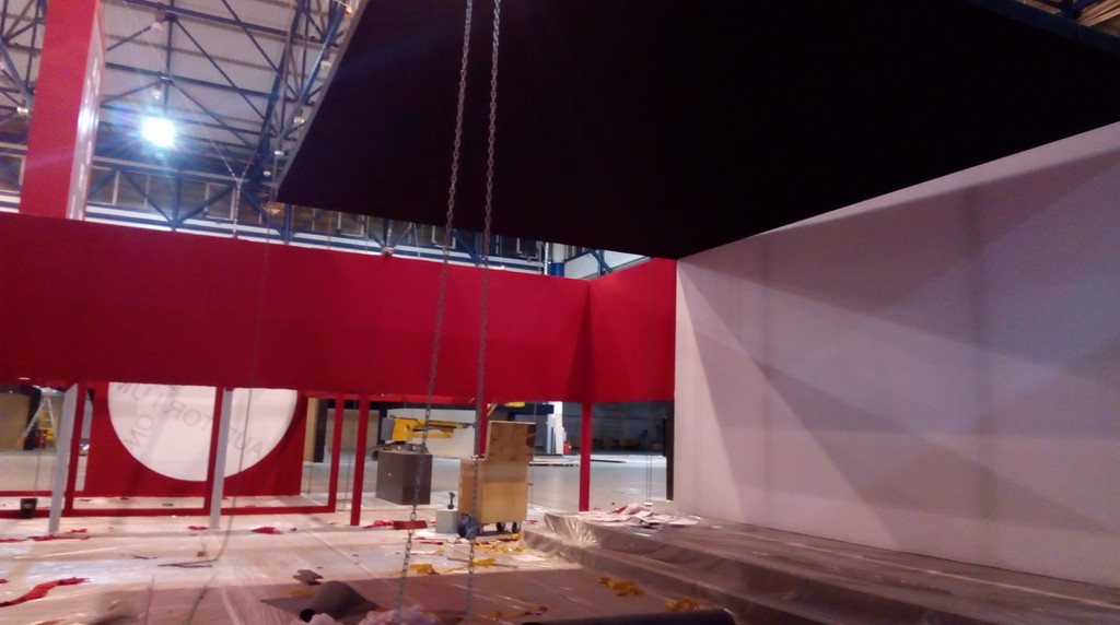 Натяжные потолки эконом вариант из ткани для выставки и конференций. Максимальная длинна и ширина 18х15м.